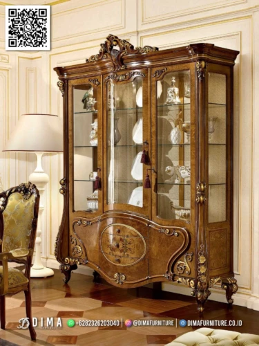 Dengan tampilan yang berkelas dan fungsi yang jelas, lemari hias ukir mewah jati valentina custom cocok untuk anda yang ingin menata koleksi sekaligus mempercantik ruangan tanpa terlihat berlebihan.