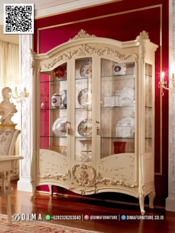 Lemari Pajangan Kaca Klasik Mewah Ivory Chareena – Anggun & Berkelas