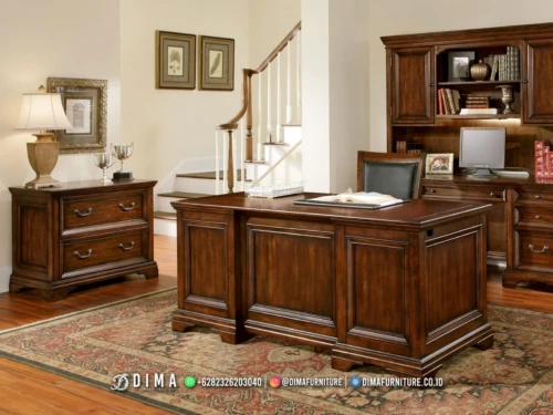 Selain itu, meja kantor klasik ini juga memberikan kesan profesional tanpa terlihat berlebihan, cocok untuk anda yang mengutamakan fungsi sekaligus tampilan.