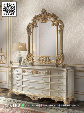 Kombinasi dresser ukir gold dan cermin besar dengan bingkai ukiran menjadikan produk ini lebih dari sekadar meja rias biasa. Anda bisa menggunakannya sebagai elemen dekoratif di kamar tidur, lorong, foyer, bahkan ruang tamu.