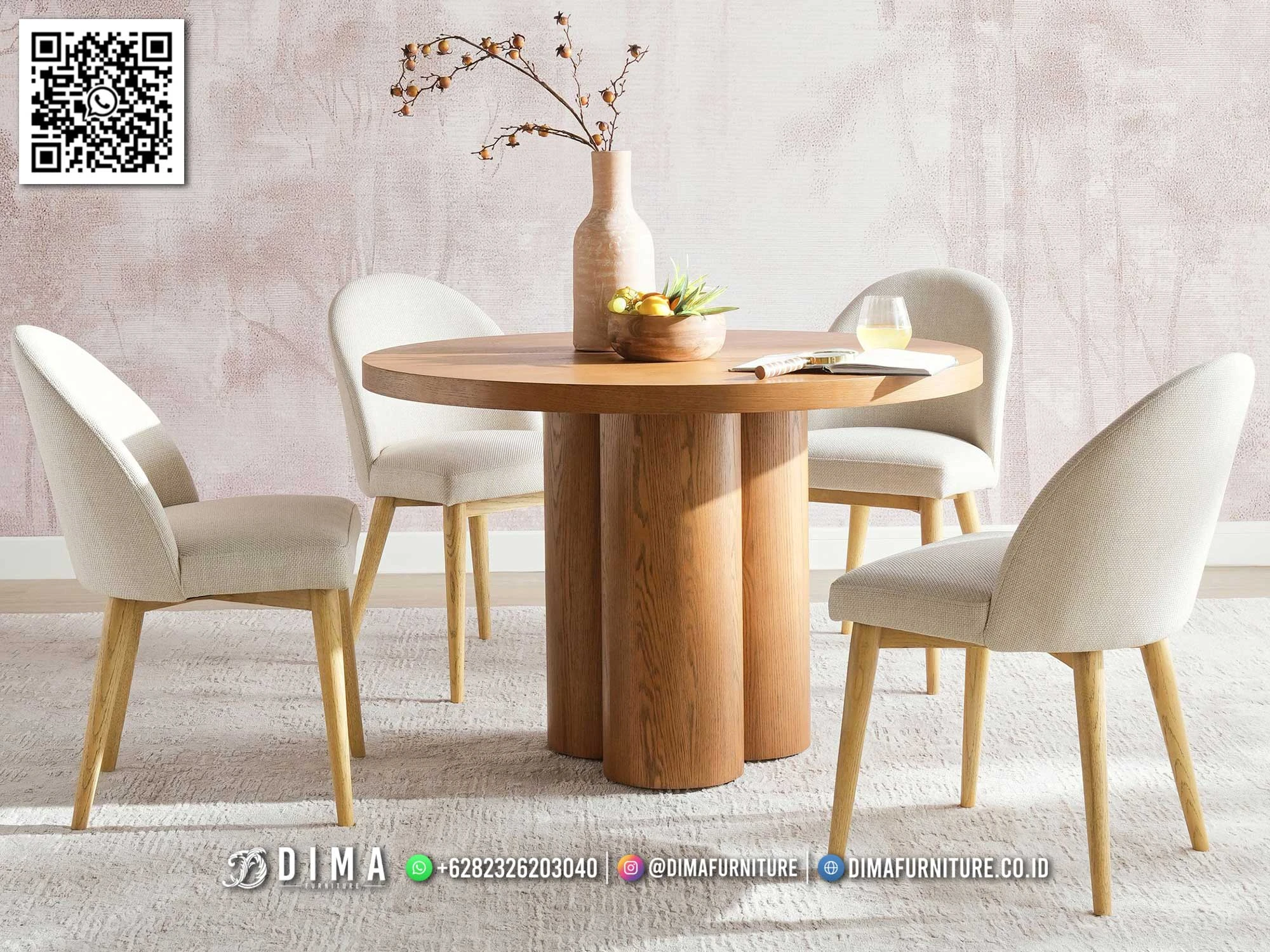 Meja Makan Bulat Minimalis Kayu Jati Lovella Elegan 242DF