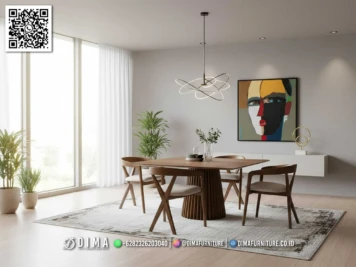 Meja makan jati furniture modern terbaru cosette hadir dengan desain minimalis elegan, material kayu jati solid, cocok untuk ruang makan modern.