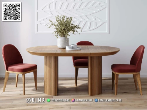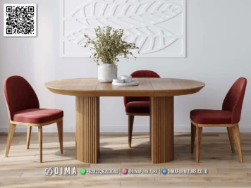 Meja makan jati theodore premium best selling menawarkan desain oval modern, material jati kokoh, dan tampilan hangat untuk ruang makan.