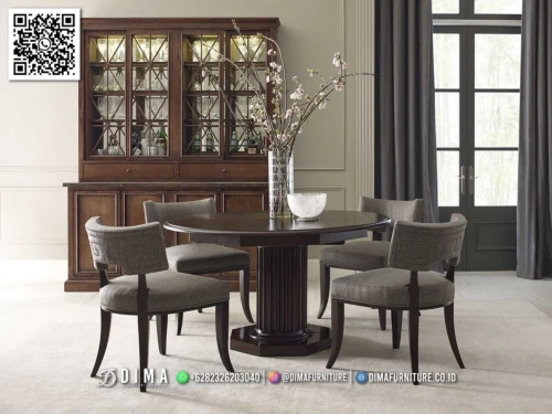 Meja makan minimalis amber kualitas terbaik hadir untuk anda yang ingin ruang makan terlihat rapi, hangat, dan tetap berkelas. Desainnya memadukan sentuhan minimalis dengan nuansa klasik yang halus, sehingga mudah masuk ke berbagai konsep interior rumah. Bentuk meja yang proporsional juga membuat area makan terasa lebih nyaman digunakan setiap hari.