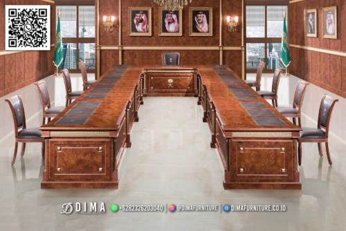 Meja rapat kantor mewah royal arabia dengan desain elegan dan konstruksi kokoh. Cocok untuk ruang meeting eksekutif dan ruang konferensi.