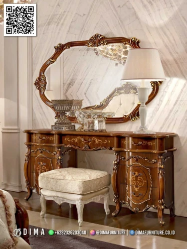 Meja rias mewah kayu jati ukir original jepara ini dirancang untuk kamu yang ingin suasana kamar terasa lebih rapi, hangat, dan berkelas. Desainnya mengusung gaya klasik elegan dengan detail ukiran khas jepara yang terlihat halus dan seimbang. Tampilan mewahnya tidak berlebihan, sehingga mudah dipadukan dengan berbagai konsep interior, mulai dari klasik, luxury, hingga modern klasik.