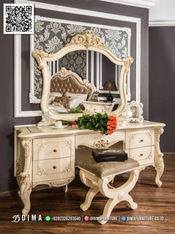 Meja rias mewah klasik ivory addison hadir dengan desain elegan dan ukiran halus. Best seller untuk kamar tidur yang ingin tampil lebih mewah.
