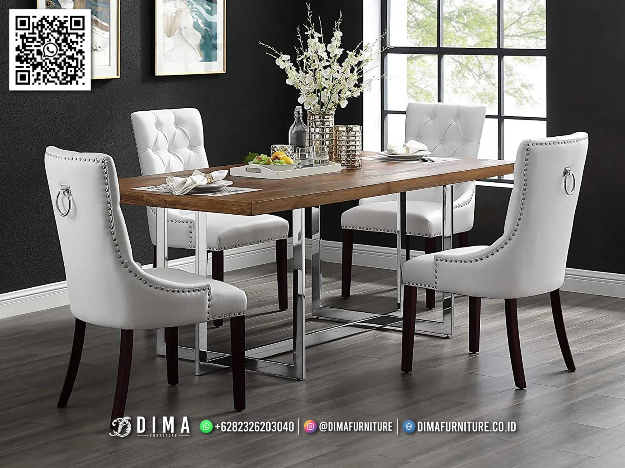 Set meja makan dima modern luxury elegan minimalis, kombinasi desain elegan dan material premium yang menghadirkan kesan mewah di ruang makan anda.