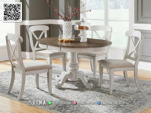 Set Meja Makan Bundar Elora Putih Natural Gaya Country
