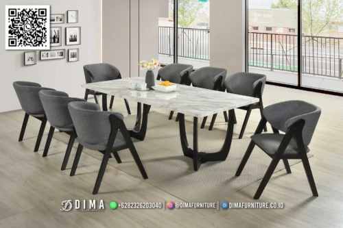 Set meja makan winston menawarkan top marble premium dan 8 kursi nyaman, ideal untuk menghadirkan ruang makan modern yang elegan.