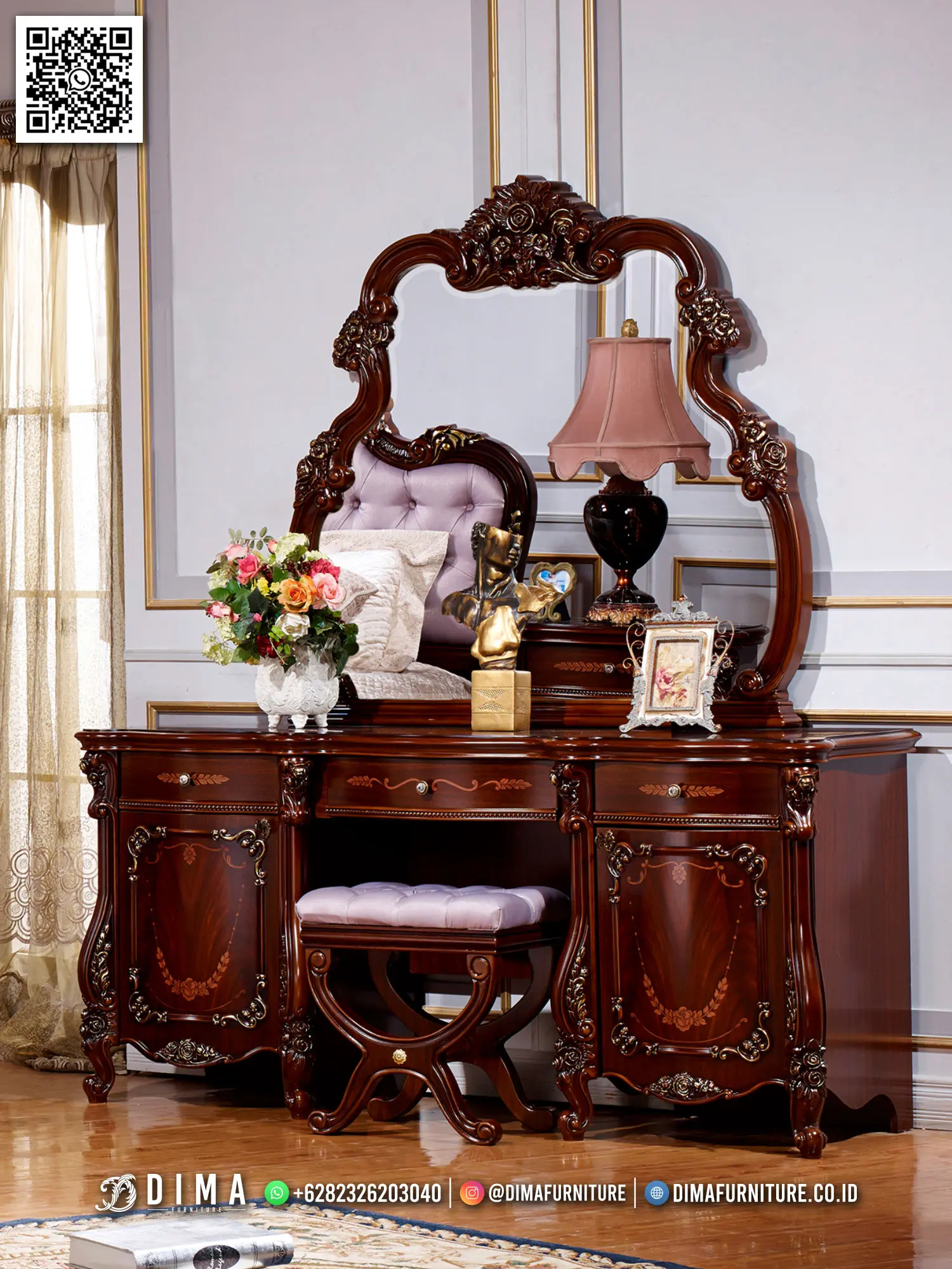 Set Meja Rias Ukir Mewah DIMA Aurélie