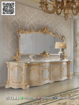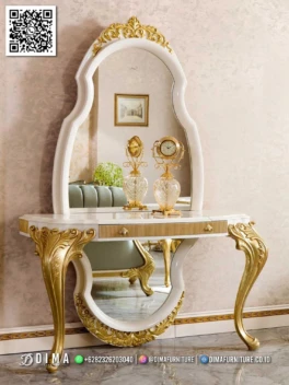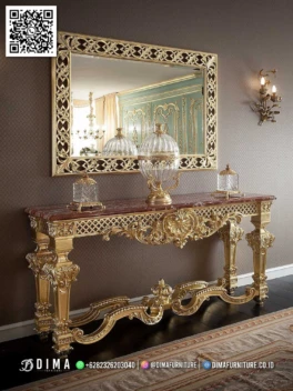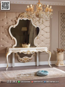 Meja Konsol Mewah Ivory Ukir Emas Khas Jepara Mebel jepara meja konsol mewah ivory ukir emas willson dirancang untuk anda yang ingin menghadirkan sentuhan elegan di dalam rumah tanpa terlihat berlebihan. Model meja konsol ini mengusung gaya klasik dengan detail ukiran halus, cocok ditempatkan di ruang tamu, lorong, atau area foyer sebagai focal point yang… selengkapnya