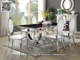 Rp 29.000.000Set Meja Makan Eksklusif Black Top Stainless Luxury Ingin menghadirkan suasana makan yang lebih berkelas? Set Meja Makan Eksklusif Black Top Stainless Luxury bisa menjadi pilihan tepat untuk ruang makan modern. Desainnya yang elegan memadukan top meja hitam glossy dengan kaki stainless silver berkilau, ditambah kursi oval sandaran putih yang memberi sentuhan mewah sekaligus nyaman…. selengkapnya