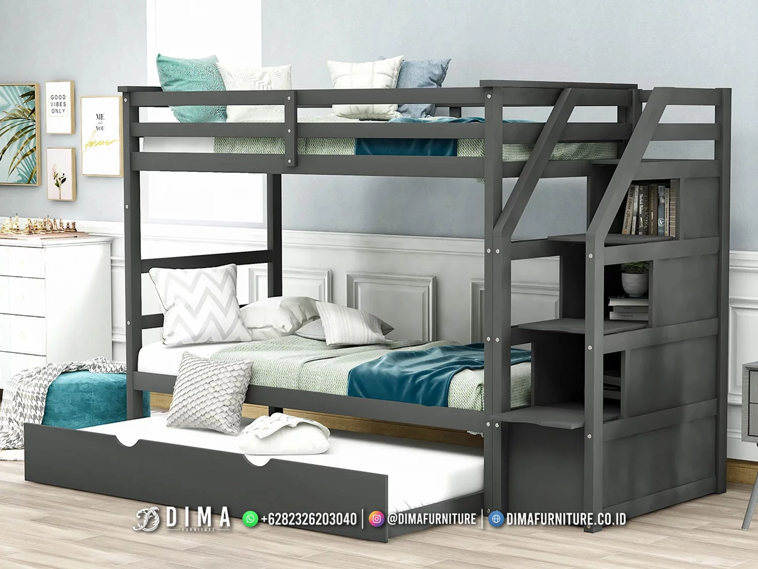 Dengan desain yang fungsional, tampilan simpel, dan fitur penyimpanan tambahan, tempat tidur anak tingkat modern rak laci greymax menjadi pilihan tepat untuk mendukung kenyamanan anak sekaligus menjaga kerapian kamar setiap hari.