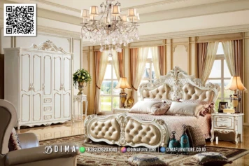 Desainnya mengusung nuansa klasik eropa dengan detail ukiran halus dan warna ivory gold yang hangat, membuat ruangan terasa lebih lembut dan mewah sekaligus tetap menenangkan untuk beristirahat.