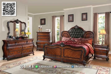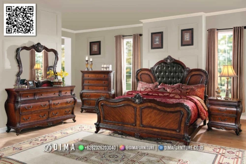 Material kayu jati solid memberi struktur yang kokoh dan tahan lama. Finishing warna cokelat keemasan membuat set kamar tidur terlihat lebih hangat dan menyatu dengan berbagai gaya interior, baik klasik, modern klasik, maupun kontemporer.